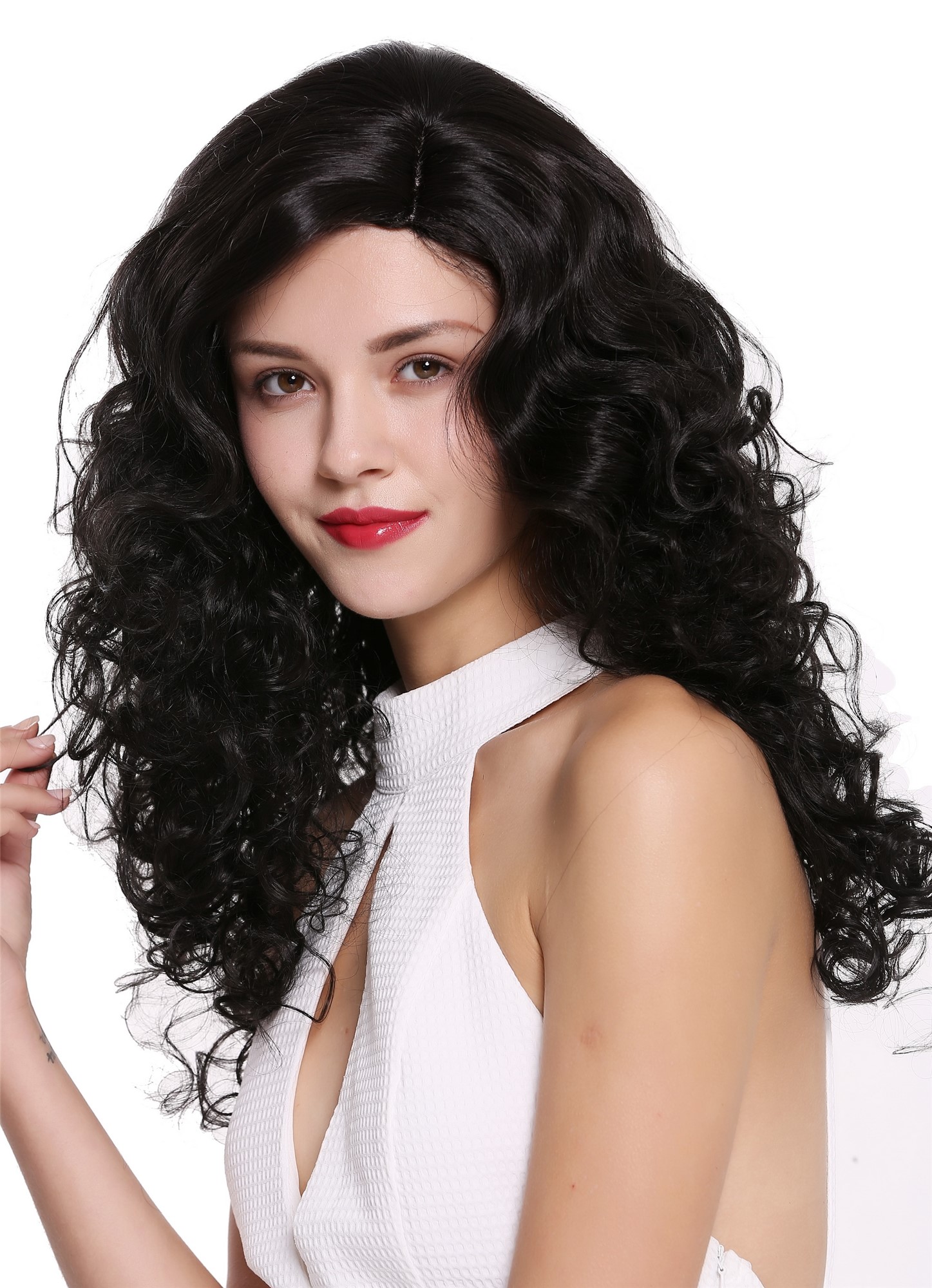 Pure luxuriance of hair – outstandingly beautiful, voluminous, curly women's wig with an enchanting side parting in black.