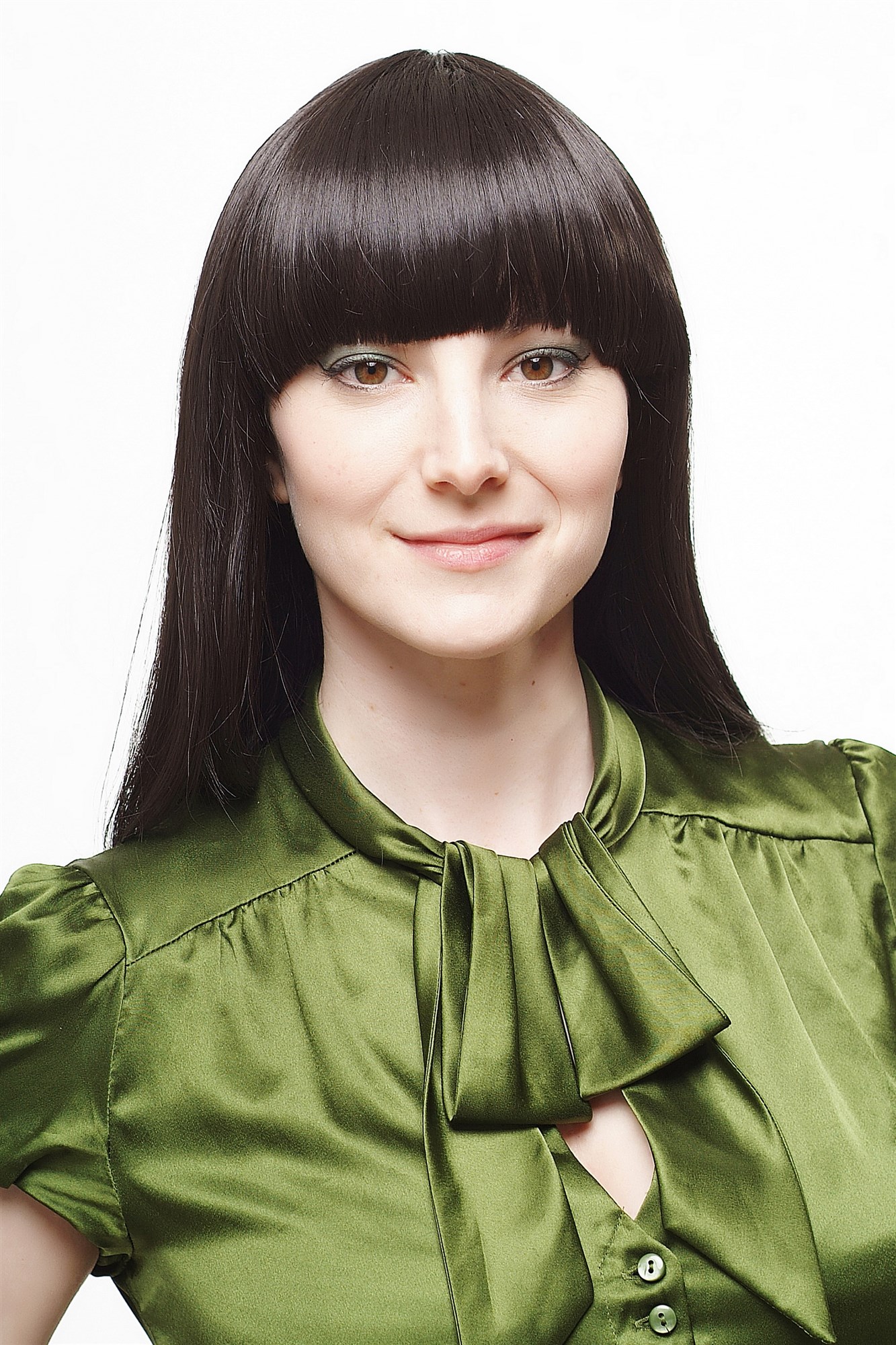 Lady women wig dark brown wide fringe straight long Cleopatra Cleo style 3423
