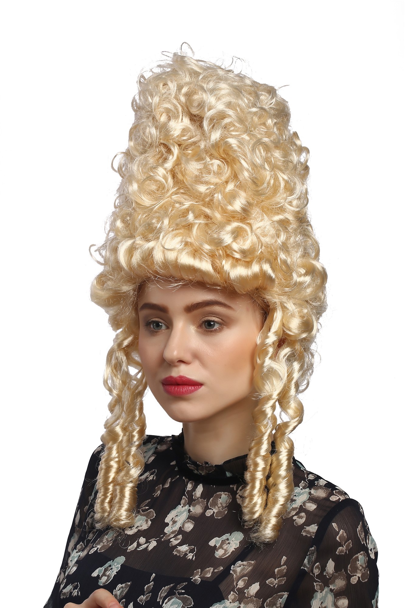 Very intricately styled lady wig for Party, Halloween, Carnival and historic cosplay - this huge baroque beehive to befit a queen or at least a countess - beautifully coiling curls falls seductively from the sides of this towering blond wig..Wig for Halloween, Party and Fancy Dress in the economy WIG ME UP party wig collection, inexpensive but with the trusted quality. Put on this extremely cool WIG ME UP fun/party wig and your are in the center of everybody's attention. The wig on a very elastic hairnet fits almost everyone is light and comfortable to wear and you can be sure that it is you who rocks even the hottest parties. This item is absolutely new with label. Discreet shipping in neutral packaging.Product no.: 90867-ZA88(J243)