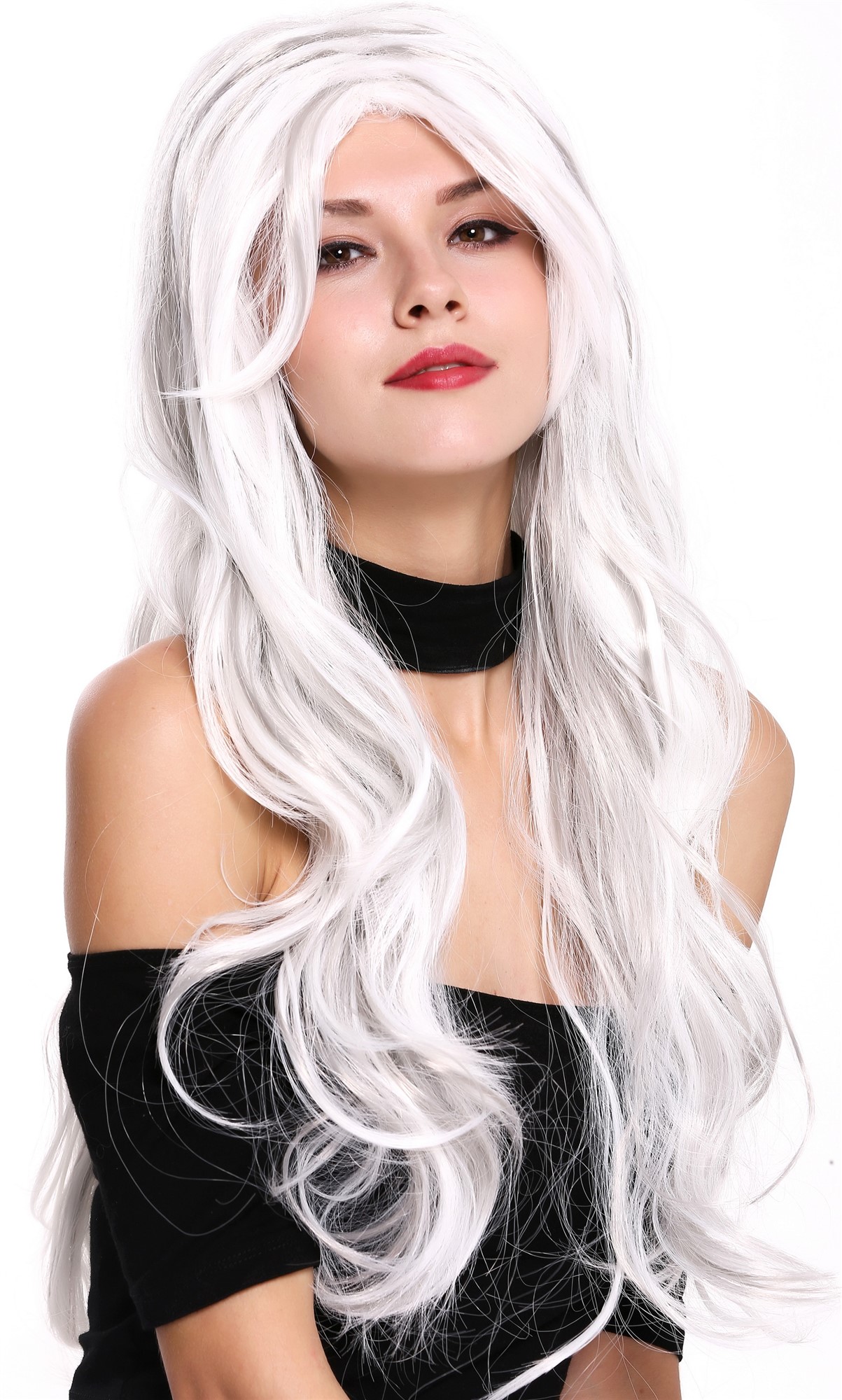 Very long and slightly wavy lady party wig in a eye-catching mix of gray and white - for fairy tale and fantas cosplay- Color: ZA60+ZA68A. length: 70 cm.