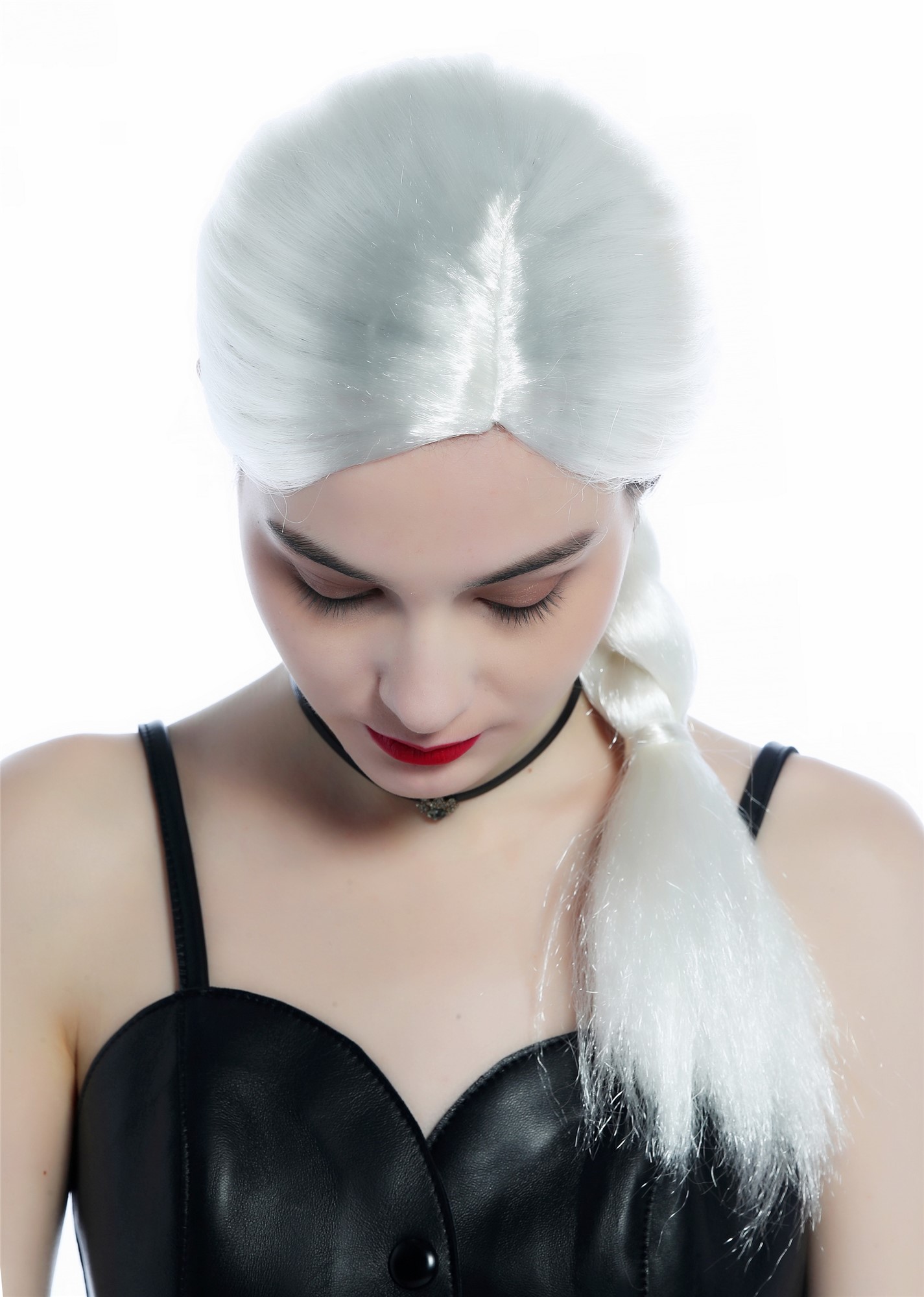 Ladies' wig for Halloween and carnival - the white smooth hair is parted in the middle and plaited into one long, thick braid. Colour Code: ZA68 . Length: approx. 23,62 inch .