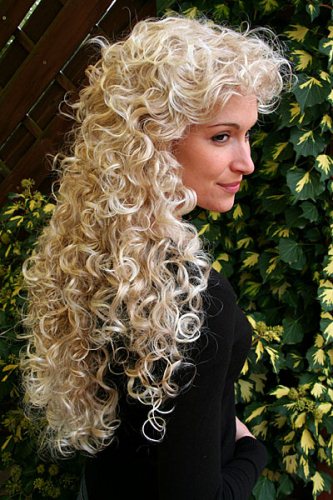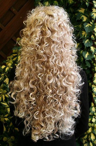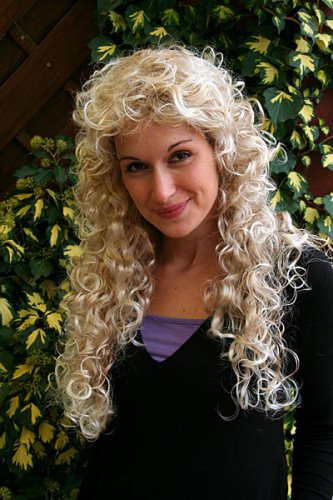 Lady women wig long blond platinum highlights tips curls curled curly 9229