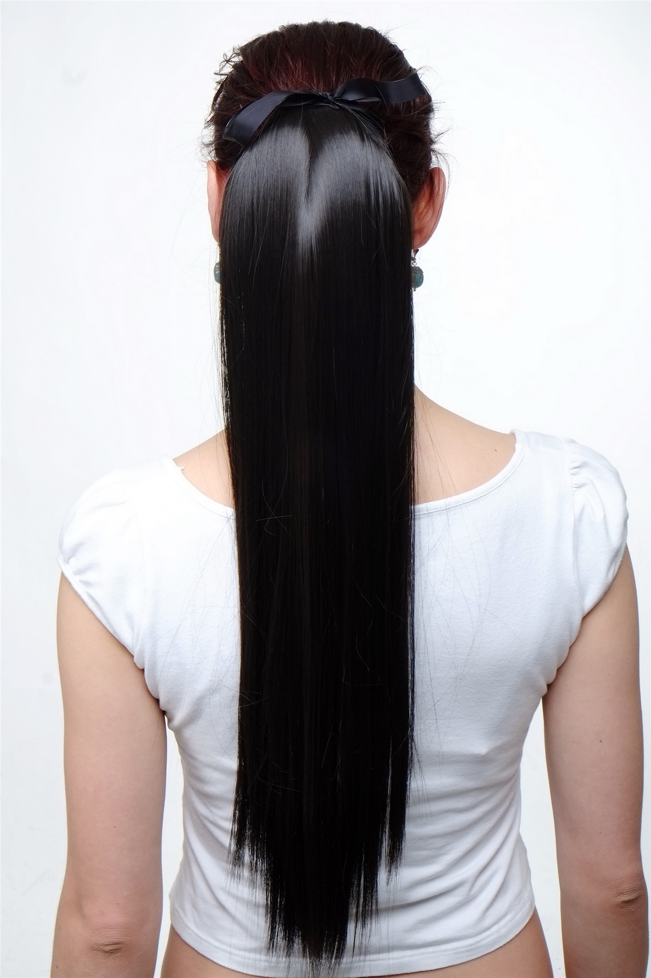 Very beautiful ponytail with a length of more than 23 inches. Straight and silken smooth and - due to the wrap around holding system of small comb and ribbum - surprisingly light and comfortable to wear for every day. Colour: dark brown Colour Standard: 3.This extremely pretty hair piece/ponytail made of high quality synthetic fiber comes with a small comb and ribbon to fix it with your own hair. This variety of an artificial ponytail is very light and comfortable to wear. Use: The hairpiece can be used to extent the length of your own ponytail. Tie your own hair to a pigtail/ponytail with a hair ribbon and attach the tiny clips/comb right behind that ribbon. Now simply wrap this hairpiece around the pigtail of your own hair. Fix the hairpiece by tying the ribbon attached to the hairpiece. This item is absolutely new and the label has care instructions in English, German, Italian and Spanish. Discreet and inexpensive shipping in neutral packaging.Product no.: C9429-3(1059)