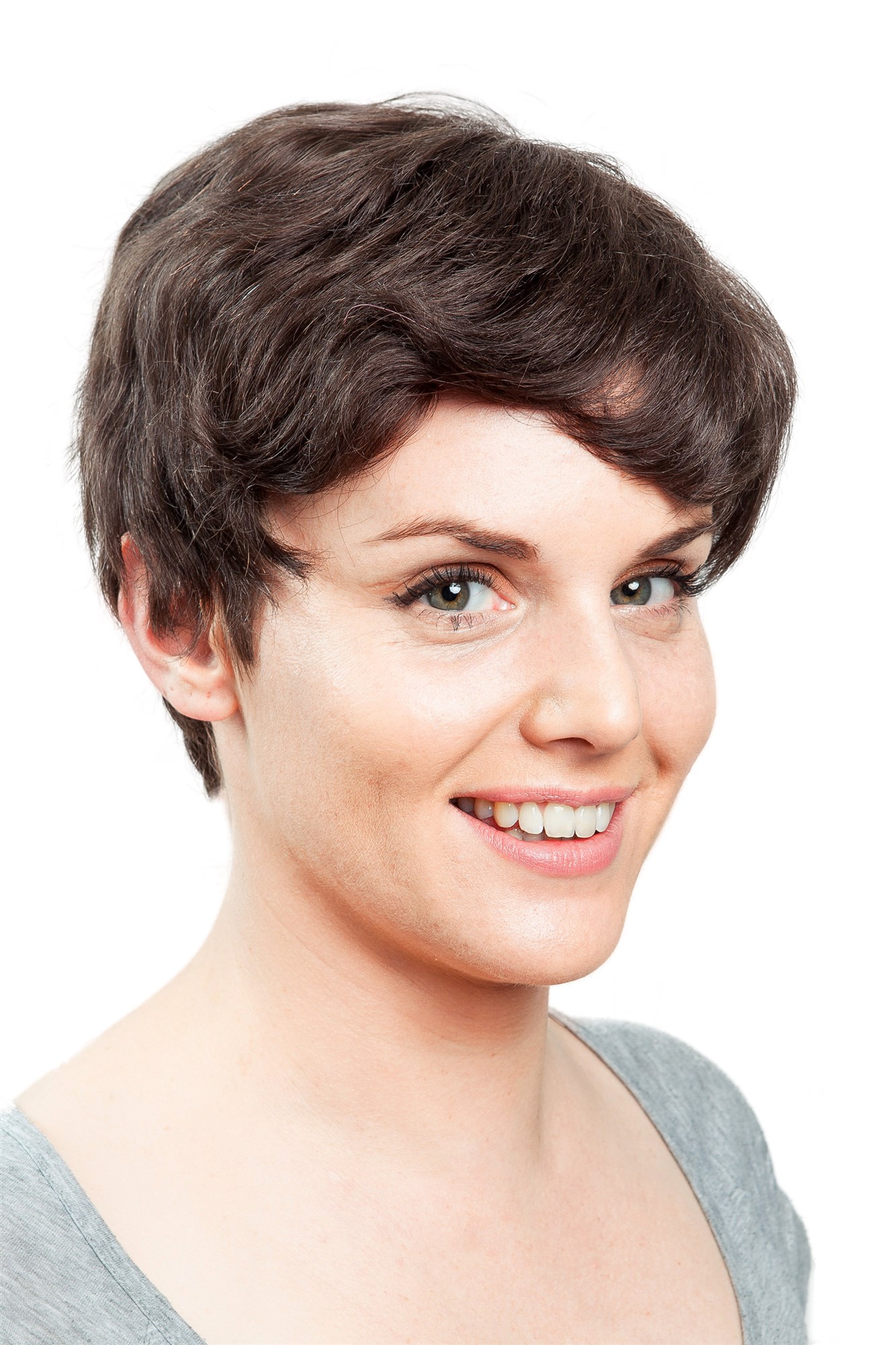 Lady quality tress wig made from short (approx. 8 inch) 100% human hair dyed in a dark brown hue and styled in a wavy, naughy and lively fashion..This wig is made of 100% human hair - yes, real human hair and really at this incredibly good price. The relatively short hair is significantly cheaper to purchase than long hair - and such a short wig is also lot easier to care for than a wig with long hair. You can style it indivually. The hair is sewn on wefts (elastic straps) - a certainly lot less labour intensive work - but the light netting with adjustable straps ensures a comfortable fit no less. The size can be individually adjusted via stretch bands with hooks sewn into the wig cap. This way you can adjust your wig for every head shape and small as well as larger head circumferences. This item is absolutely new. Discreet and inexpensive shipping in neutral packaging.Product no.: K7-01HH-4(D003)