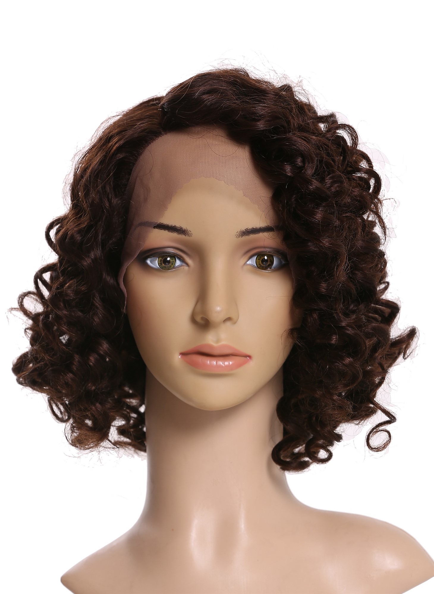 Lady wig human hair lace front monofilament parting curls black brown UR-018