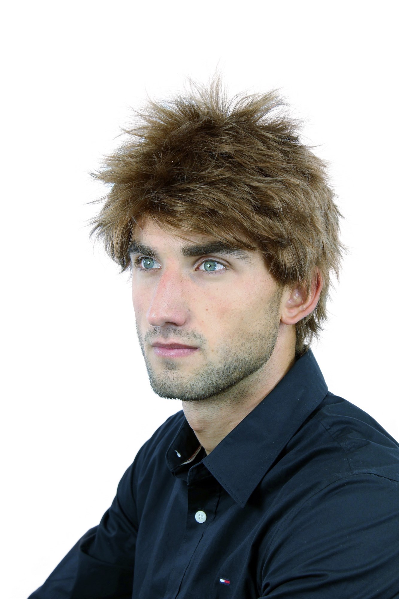 Quality wig for the gentleman with short and very wild and dense hair in a mix of copper brown and dark blond..Handsome and very natural looking wig made for WIG ME UP of high quality synthetic fiber. Suitable up to a maximum head circumference of 60 cm, but easily adjustable to smaler sizes with elastic straps and hooks sewn into the hairnet. Comes with care instructions in English, Spanish, Italian and German. Discreet shipping.Product no.: WL-2072A-18/30(F117)