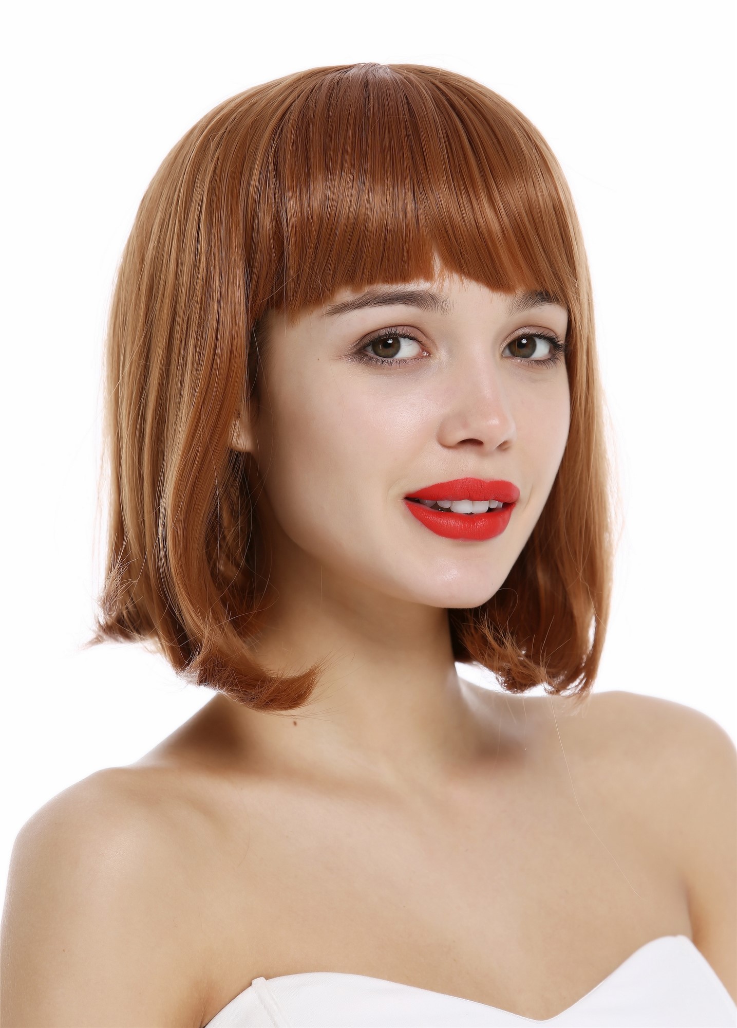 Lady wig short Longbob bangs straight sleek curved tips copper blond YZF-4375