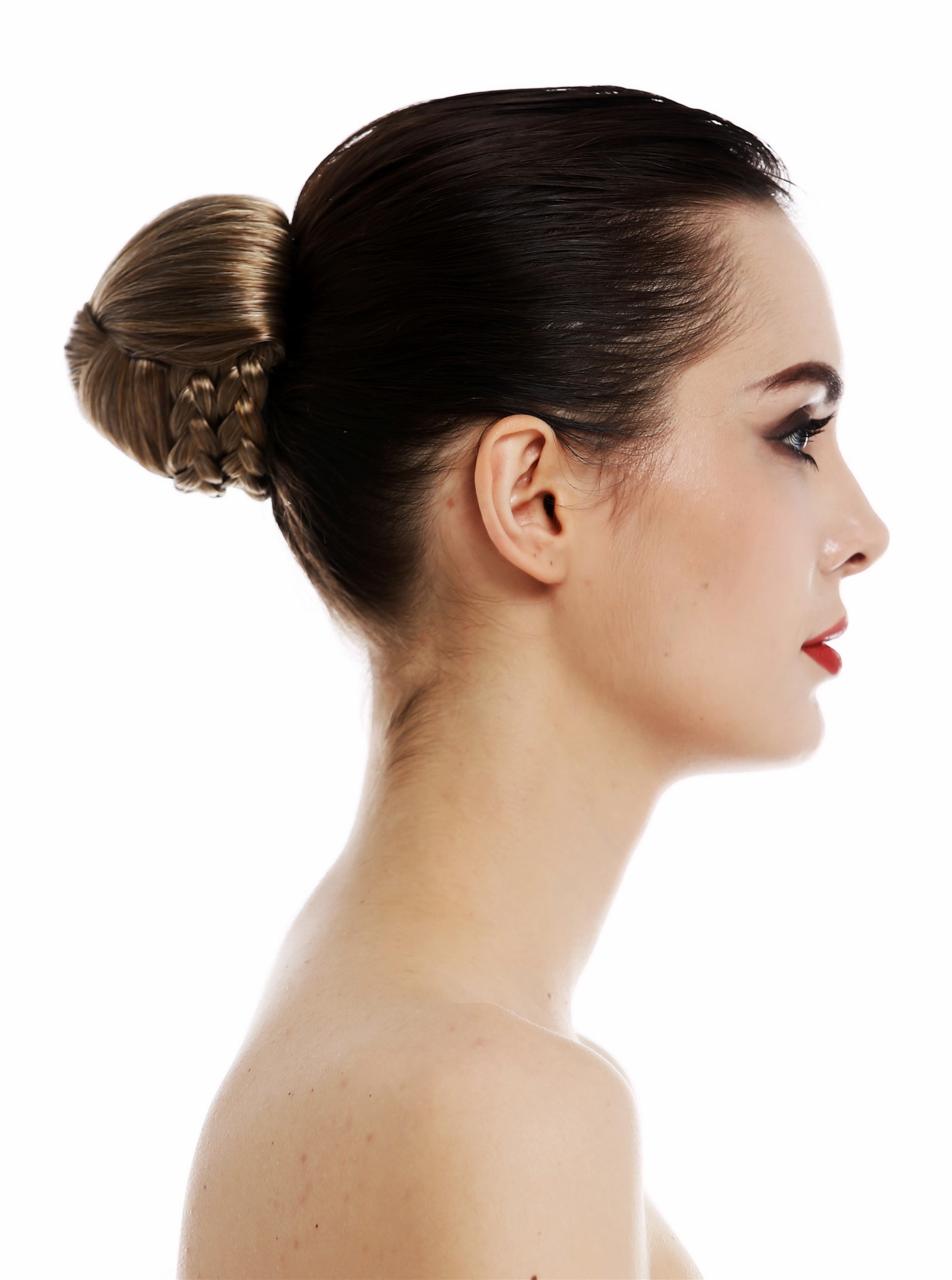 Dutt Haardutt Chignon traditionell geflochten Braun Blond gesträhnt TYP-0062-CHOCO